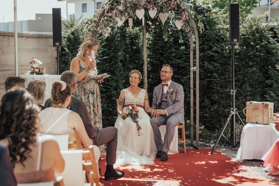 Mir ist es wichtig, dass besondere Momente auch besonders gefeiert werden. Meine Liebe zu Worten und mein Interesse für Menschen und ihre Geschichten sind fast unerschöpflich. Ich bin spontan, lustig und ehrlich - und ich habe ein gutes Gefühl für den Augenblick. Aus den vielen kleinen Momenten eures Lebens lasse ich eure Geschichte am Tag der Feier spür- und greifbar aufleben. Für berührende, heitere und überraschende Momente und eine unvergessliche Feier, in der eure Story im Mittelpunkt steht! Eure Trauung leite ich souverän, humorvoll und wertschätzend.